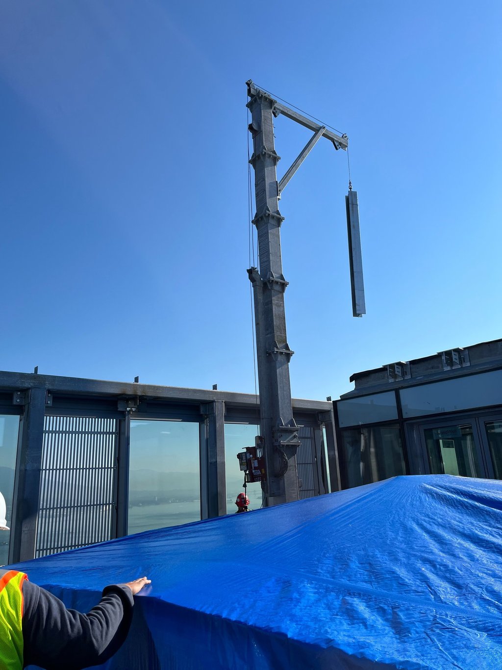 A variety of aluminum davit arm booms and masts designed for versatile rigging configurations, providing safe clearance over tall parapets and complex building edges.