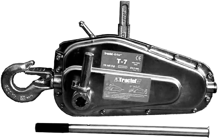 Heavy-duty Tirmaster™ (T-Series) manual wire rope winches, ideal for locations without power access, tight spaces, or specialized short-drop rigging setups.